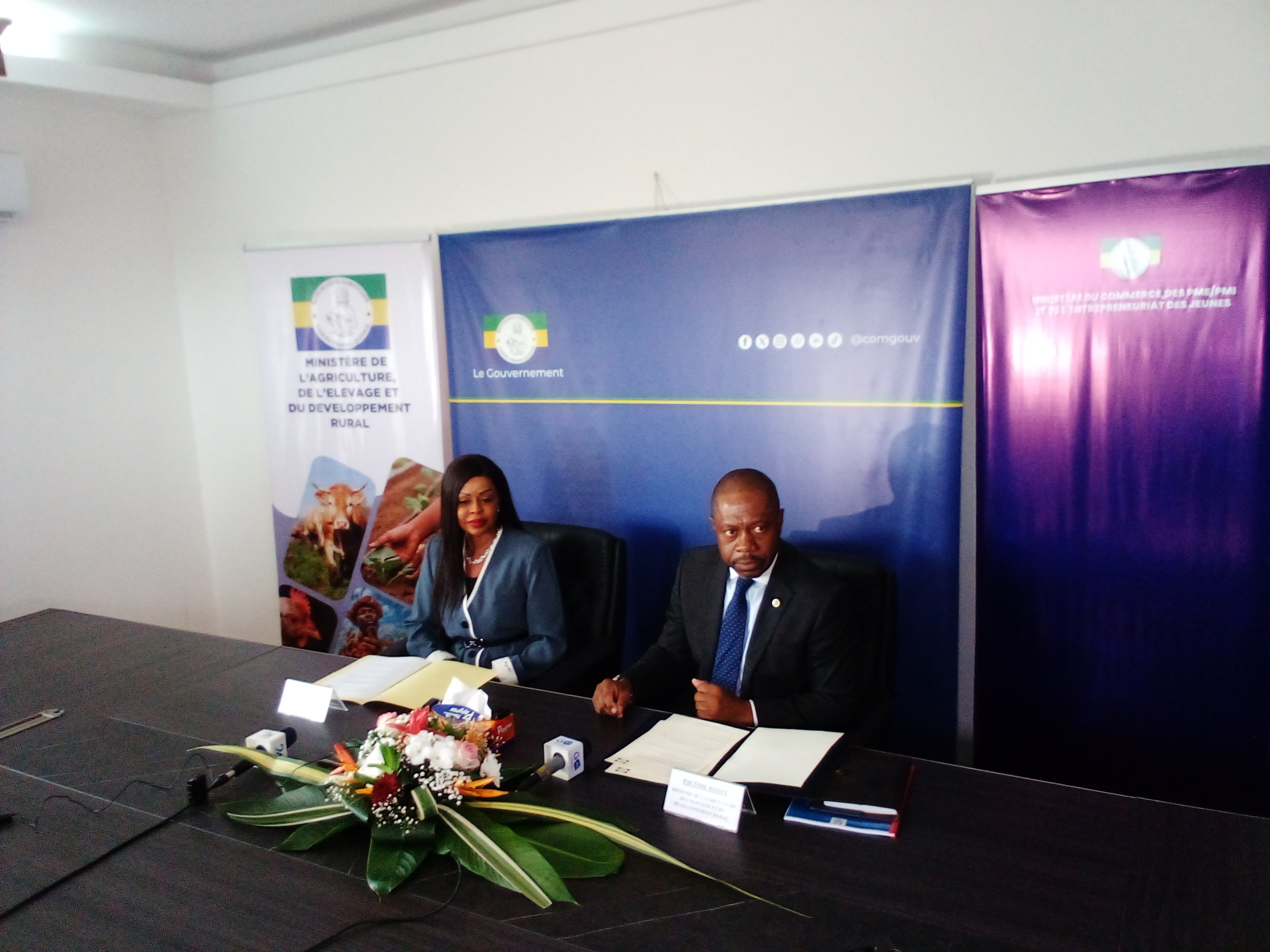 Libreville, (Agence de presse La Plume de l’Info com) – Ce jeudi à Libreville, les ministres de l’Agriculture, de l’Élevage et du Développement rural, Pacôme Kossy, et du Commerce, des PME-PMI et de l’Entrepreneuriat des Jeunes, Zenaba Gninga Chaning, ont lancé la première phase de l’appel à manifestation d’intérêt (AMI) visant à sélectionner 150 fermes avicoles à travers l’ensemble du territoire national.