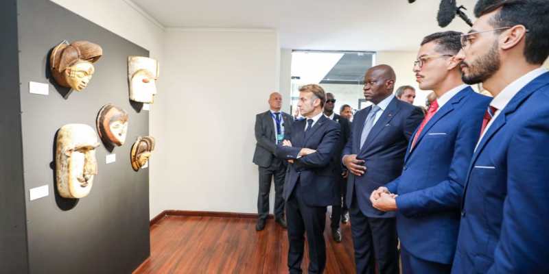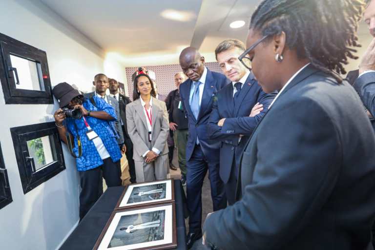 Les deux Chefs d’État ont ensuite découvert la Galerie M, avec l’exposition « Défigurés » consacrée aux masques et reliques gabonais, avant de clôturer leur visite dans l’auditorium, où quatre B-boys gabonais ont présenté des démonstrations de breakdance et de N’Tcham, sous la coordination de l’artiste Ekomo Bikoro Jean Hussein.